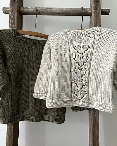 A sweet relaxed fit cardigan, knitted in one up until the armhole. Can be worked with or without the back lace panel.