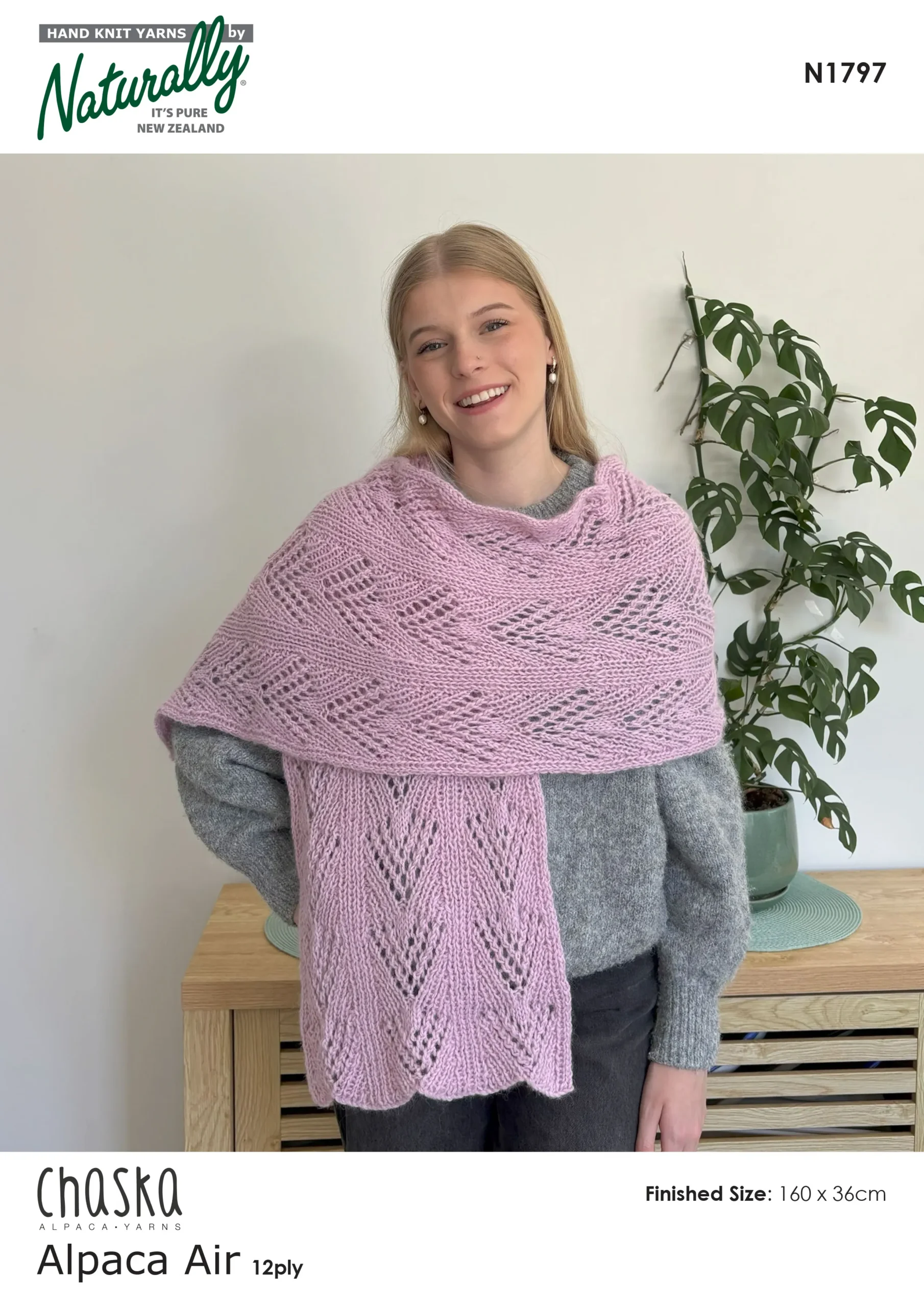 N1797 Chaska Alpaca Air 12 ply Rib & Lace Zig Zag Wrap| Knitting Pattern – Paper Copy or PDF Download