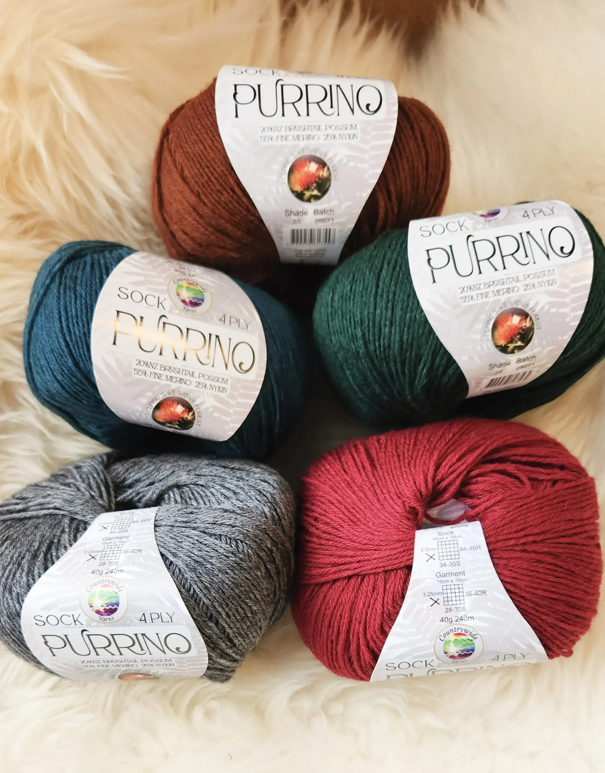 Purrino 4 Ply Merino/Possum/Nylon Sock yarn | 40g